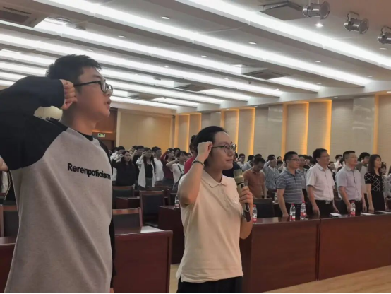 开学典礼上,全体新生举行了庄严的诚信教育宣誓。