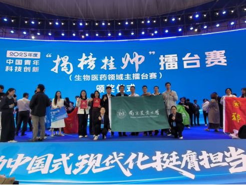 9月27日-29日,由共青团中央、中国科协、教育部、中国社会科学院、全国学联主办,共青团内蒙古自治区委员会、呼和浩特市人民政府承办的2025年度中国青年科技创新“揭榜挂帅”擂台赛(生物医药领域主擂台赛)在呼和浩特市举办。经过激烈的比拼,我院杨波副教授团队参赛的项目荣获擂台赛特等奖。