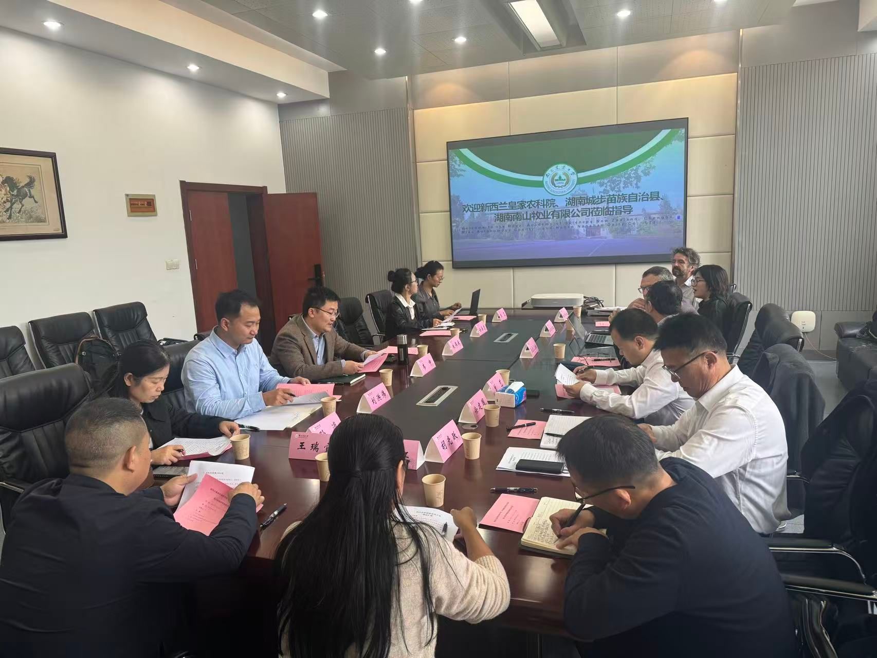 10月31日上午,新西兰皇家农业科学院专家David Robert Stevens、Warren McGeorge King、Jiafa Luo,中共城步苗族自治县委副书记曾艺,以及湖南省南山种畜牧草良种繁殖场党委书记徐建国等一行到访草业学院,围绕产学研深度融合、南山牧场可持续发展和退化草地修复等议题开展调研交流。座谈会由草业学院副院长(主持工作)韦中主持。