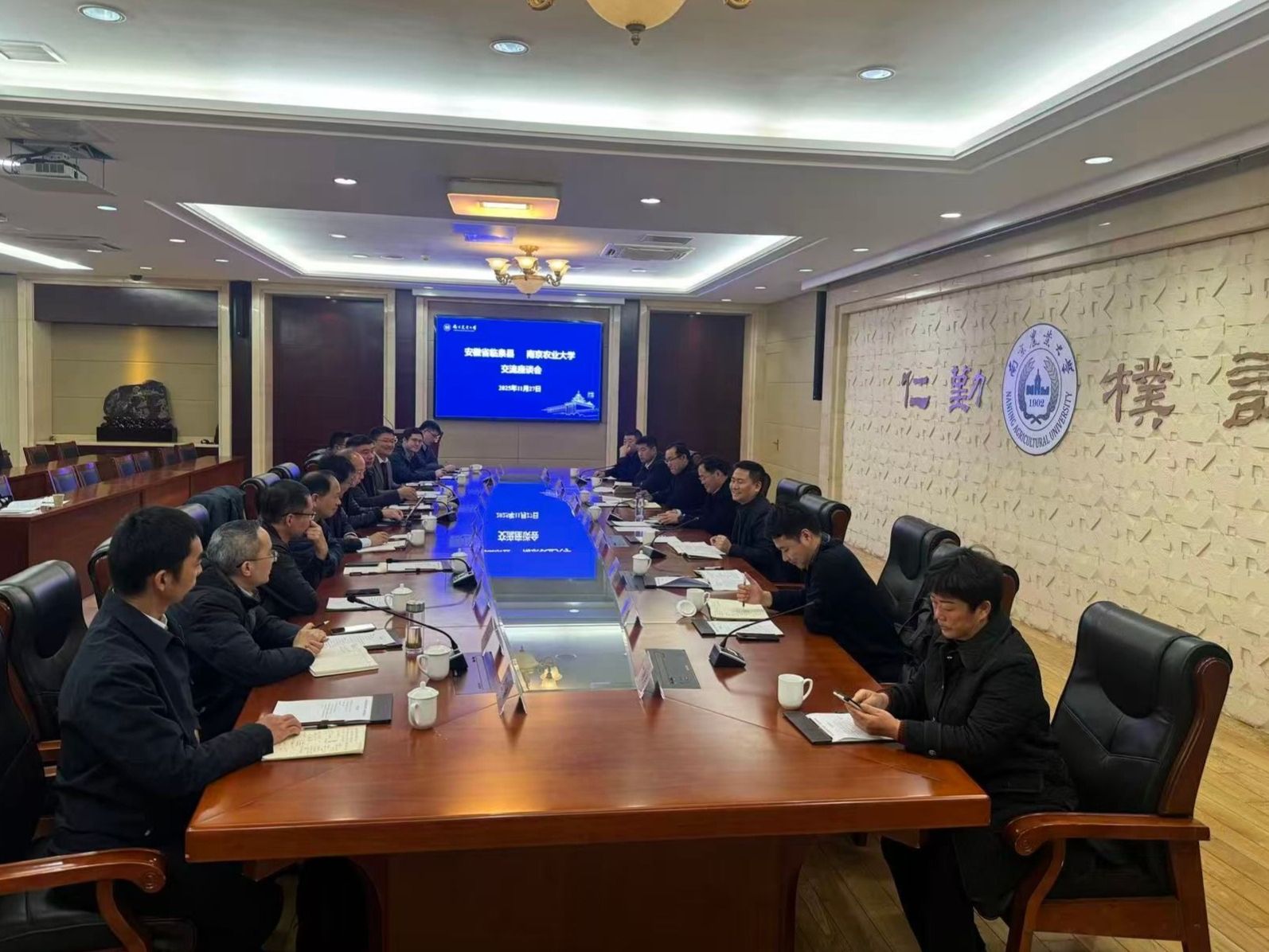 11月27日,临泉县委副书记尹建华、临泉县委常委、副县长汪涛、临泉县科技局局长吕叶红、临泉国家农业科技园区管理服务中心主任谭夏等一行到南京农业大学调研,我校党委常委、副校长丁艳锋出席座谈会。座谈会由社会合作处处长许承保主持。我校草业学院党委书记戴廷波、副院长(主持工作)韦中、农学院、资源与环境学院、植物保护学院、食品科技学院、动物医学院等学院相关团队负责人参加了座谈会。
