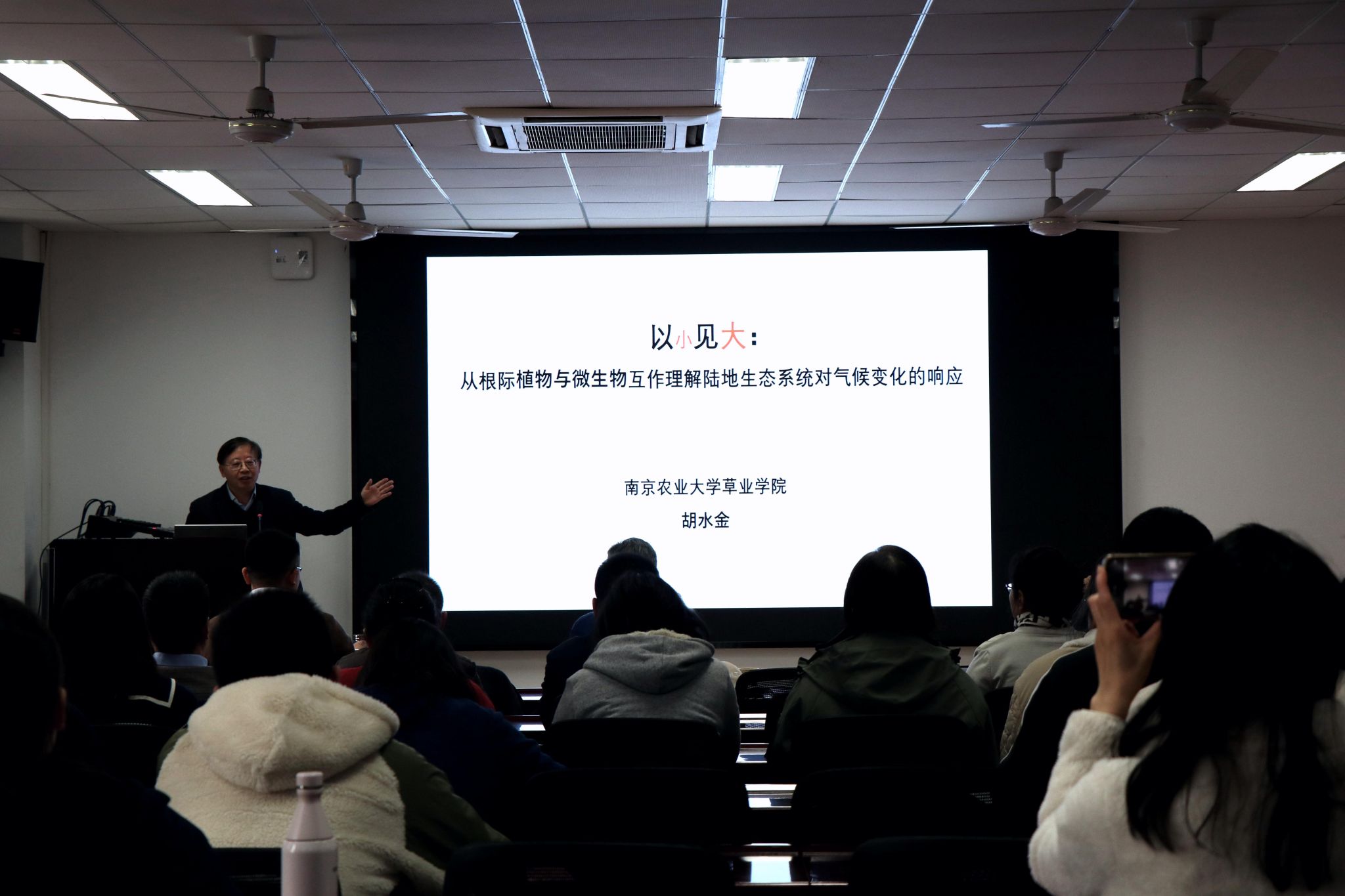 在上午的主旨报告环节,郭振飞教授作了题为“草类植物农艺性状相关基础研究进展及关键科学问题”学术报告,介绍了当前的科研动态及草业科学发展的关键问题。胡水金教授作了题为“根际植物微生物互作与陆地生态系统对气候变化的响应”的学术报告,介绍了自身的科研历程以及当前根际植物微生物的研究进展。尤佩华结合产业发展和人才培养工作作了题为“向内生长 向远而行”的专题报告。