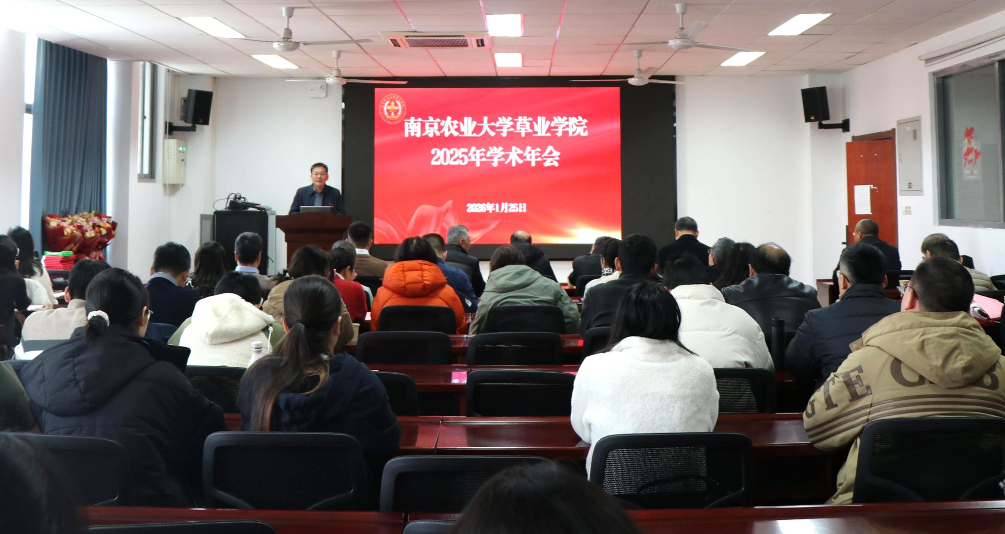 为全面总结学院2025年工作,加强学术交流,推动高质量发展,1月25日,草业学院在理科南楼F413会议室举行2025年学术年会。特邀江苏波杜农牧股份有限公司董事长尤佩华出席活动。草业学院全体教职工、部分本研学生及退休教师参加活动。学术年会由院党委书记戴廷波主持。