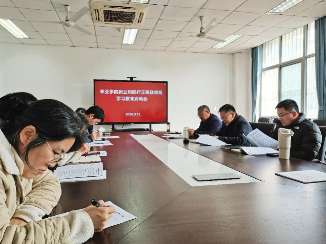 3月12日下午,草业学院在理科南楼F210会议室召开树立和践行正确政绩观学习教育动员部署会。全体院领导、党委委员,党支部书记、办公室主任、学工办主任、党务秘书等参加会议。会议由院党委书记戴廷波主持。