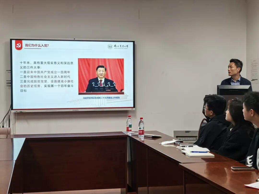 杨博带领入党积极分子回顾了南京农业大学的红色历史。从早期的革命活动到新中国成立后的教育发展,学校始终是培养革命人才和推动社会进步的重要阵地。通过展示珍贵的历史图片和文献资料,杨博与同学们共同重温了学校在不同历史时期所作出的贡献与取得的成就。