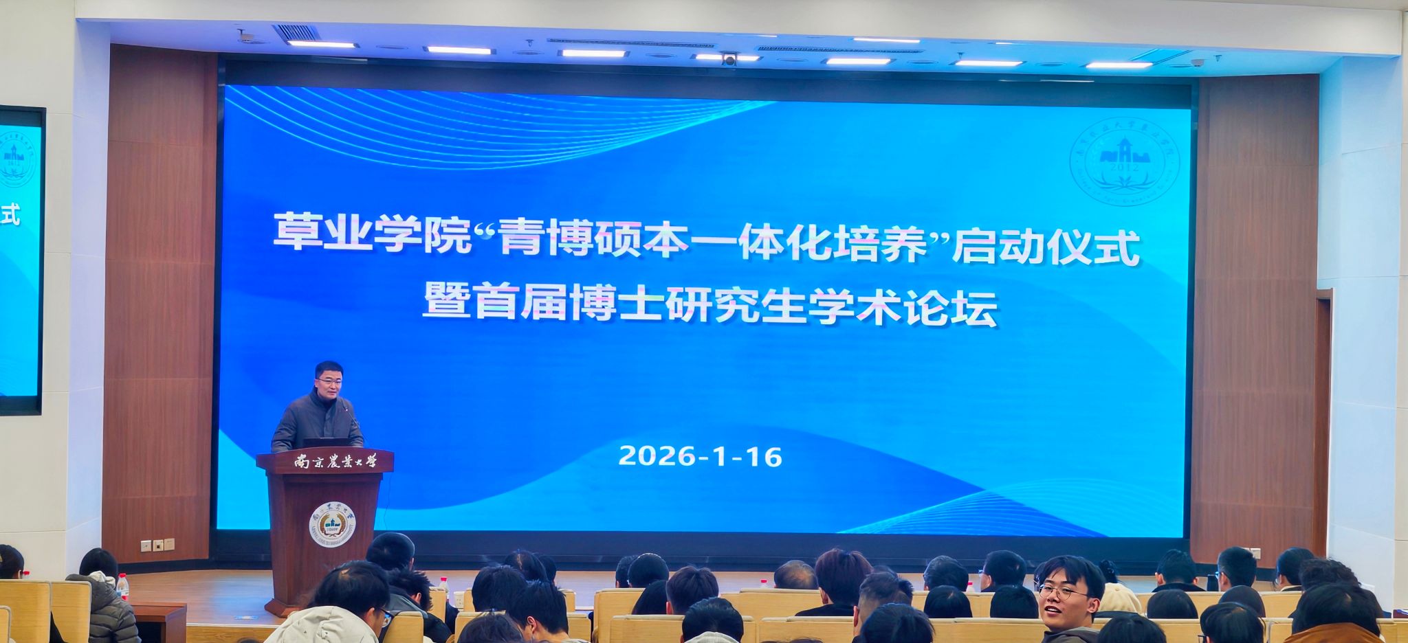 1月16日,草业学院“青博硕本一体化培养”启动仪式暨首届博士研究生学术论坛在卫岗校区图书馆一楼报告厅举行。论坛旨在深入推动教育、科技、人才一体化发展,进一步活跃草业学院学术氛围,加强青博硕本体系化培养。特邀研究生院常务副院长邹建文出席并作专题讲座。草业学院副院长(主持工作)韦中、党委副书记韩立新、副院长陈煜及教师,博士后代表、全体本科生和研究生参加活动。